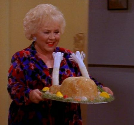 | Marie carrying the tofu turkey in "No Fat" | |